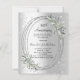 Um fundo com aparência de prata. Decorado com folhagens, uma moldura oval e diamantes artificiais. Personalize e adicione um nome e detalhes.