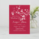 Este fundo de escarlate apresenta um galho impressionante de primavera branco floresce. Apresentado como um convite para Dias de os namorados, é adequado para qualquer ocasião feliz.