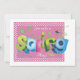 Primavera de boas-vindas com uma comemoração cheia de diversão. Este convite irá estabelecer o clima para esse dia especial. A proteção cor-de-rosa tem uma estrutura de bolinhas branca e letras coloridas que soletram "s-p-r-i-n-g". <br/>A placa é fácil de personalizar com seu texto, fonte, cor da fonte e escolha de seis tipos de papel.<br/>() Não exatamente o que você está procurando? Todos os nossos produtos podem ser personalizados para atender às suas necessidades sem custos adicionais.<br/>() Basta entrar em contato conosco em askpixieprints.com<br/>() Coordenando os produtos disponíveis: