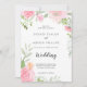 Este convite para casamento de peônias de primavera é perfeito para um casamento elegante. A primavera ou design de verão moderna apresenta simples coloração d'água, pedras rosadas e folhas verdes salgadas com um toque rústico do país. Inclua mais detalhes (e informações de RSVP on-line opcionais) na parte traseira da placa para salvar o papel.
