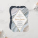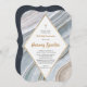 Um belo fundo marmorizado em tons terrosos de azuis, marrons, dourados, turquesas e cinzas envolve uma moldura dourada em forma de diamante. Clássico e moderno ao mesmo tempo, este lindo convite é perfeito para a sua celebração especial de Primeira Comunhão. O nome e a ocasião são destacados em texto dourado com uma cruz dourada na ponta da forma de diamante. Geométricos em tons terrosos no verso.