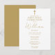 Este cartão postal de convite de primeira comunhão em ouro elegante pode ser personalizado com suas informações em tipografia sofisticada. Criado por Thisisnotme©