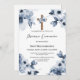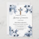 Convite de primeira comunhão floral azul em espanhol para menino.