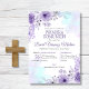Convide os seus entes queridos para a Primeira Comunhão do seu filho com este convite elegante. Adornado com lindas flores roxas em aquarela, este convite capta a essência de uma Primeira Comunhão Católica.
