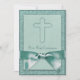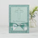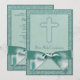 Modelo de convite de primeira comunhão para menina com cruz azul-teal elegante. Este convite de primeira comunhão azul-teal jade é facilmente personalizado para o seu evento, bastando clicar no botão "Personalize!" para começar a adicionar os detalhes do evento, estilo de fonte, tamanho e cor da fonte e texto. Por favor, note que todos os adesivos, cartões e modelos de convite que você encontrará na Zazzle são gráficos impressos sem joias, laços, relevos, rebaixos ou peças ou partes adicionais.