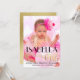 Convite de primeiro aniversário moderno com texto em folha dourada preta e dourada em um fundo de foto completo e verso em folha dourada. Você pode personalizar facilmente este convite elegante de primeiro aniversário dourado, simplesmente adicionando sua foto e detalhes do evento. Você pode alterar o estilo e a cor da fonte e mover o texto conforme necessário para sua foto. Este é um design impresso sem folha de verdade.