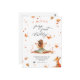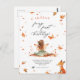 Convite de Primeiro Aniversário da Fada de Outono com uma Raposa e uma Pixie com Asas e Folhas de Outono