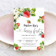 Celebre o primeiro aniversário da sua pequena com este encantador convite temático de morango. Com ilustrações doces de morangos, flores e folhagens, este design define o tom perfeito para uma festa de verão alegre. A mistura elegante de fontes cursivas e negrito faz com que os detalhes se destaquem lindamente. Ideal para aniversários de meninas, este convite é personalizável para se adequar ao seu evento e vai deliciar os convidados com sua aparência lúdica e elegante.