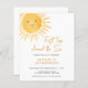 Está planejando a primeira festa de aniversário de um menino? Este belo convite orçamentário é decorado com uma aquarela amarela sorrindo o sol e diz "Primeira Viagem ao redor do Sol" na tipografia de na moda. Facilmente personalizável. Original Watercolor © Michele Davies.