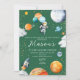 Celebre seu pequeno astronauta com este convite divertido de primeiro aniversário com o tema espacial “Fora deste Mundo”. Com ilustrações divertidas de astronautas, foguetes, planetas e estrelas, este design é perfeito para uma festa de aniversário com o tema “Primeira Viagem ao redor do Sol”.