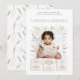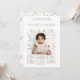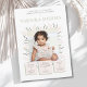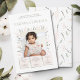 Celebre o primeiro ano do seu pequeno com um toque de elegância e charme! Este convite de primeiro aniversário, lindamente desenhado, apresenta uma moldura delicada de pétalas macias cor-de-rosa pálido e folhas verde-pálido suaves, abraçando perfeitamente uma foto querida da sua doce aniversariante.