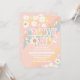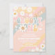 Celebre o marco do seu pequeno com este convite de primeiro aniversário retrô e descolado! Com letras borbulhantes divertidas, listras onduladas pastéis, margaridas, sinais de paz, estrelas e detalhes caprichosos, este design irradia paz, amor e diversão. Perfeito para uma festa de primeiro aniversário, este convite personalizável define o tom para uma celebração vibrante. Personalize com o nome da criança, detalhes da festa e informações de RSVP para criar um souvenir único que os convidados vão adorar.