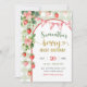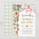 Convite de Primeiro Aniversário Morango Berry, Convite de Aniversário com Laço Gingham Rosa, Convite de 1º Aniversário Gingham Verde Sage
