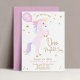 O Convite Magical de primeiro aniversario Unicórnio Um é um dia mágico! Celebre o seu grande dia com este convite de aniversário de unicórnios divertido e sonhador. Apresentando um unicórnio rosa e pastel surgindo com um mane arco-íris, é perfeito para qualquer primeira festa de aniversário com um unicórnio, arco-íris ou tema de conto de fadas. Personalize facilmente com o nome do seu filho e os detalhes da festa. Bonita, colorida, e cheio de magia, como sua aniversariante!