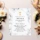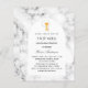 Uma moldura de arco branca e impressão de mármore como fundo. Um cálice dourado e uma hóstia como decoração. Personalize e adicione um nome e detalhes.