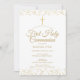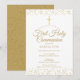 Elegante convite de primeiro comunhão com delicado pó dourado, você pode personalizar com suas informações especiais em texto dourado chic. Desenhado por Thisisnotme©
