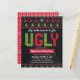 Celebre a temporada de festas de Natal em "estilo" com seu suéter de Natal mais feio e bonito! Árvores brancas, brancas, balneares, renas, ornamentos e uma divertida tipografia de "suéter" em vermelho, verde e azul-aqua, cobrem um fundo de quadro-negro. Um padrão branco de sela de árvores, renas, e ornamentos, sobre um fundo vermelho, enfeita as costas. Comemore com a família e os amigos enquanto sente o calor e a alegria da temporada de festas. Envie este convite de festas de Natal divertido, simples, moderno e personalizado. Faça deste Natal um para se lembrar! Usando os modelos fáceis de usar, digite todas as informações de sua parte e você pode personalizar facilmente este convite de feriado de orçamento. Por favor, me mande mensagens com quaisquer perguntas ou solicitações.