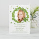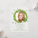 Personalize e adicione sua foto favorita a este lindo e redondo quadro de molhos verdes para uma Rua. A celebração, Festa de aniversário ou Chá do dia de Patrick e deixe a festa começar! br/>O cartão é fácil de personalizar com o seu texto, fonte, cor da fonte e escolha de seis tipos de papel.