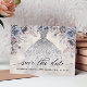 Cartões-postais de convite de Quinceañera com design floral moderno. Design com vestido prateado e elementos florais em um fundo pérola brilhante. Personalize com sua foto e detalhes no verso.