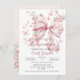 Celebre seu dia especial com o Convite de Quince Anos Elegante com Laço Rosa e Pérolas, lindamente desenhado com flores silvestres delicadas, borboletas e um laço de cetim chique. Perfeito para criar um visual atemporal e feminino, este design é ideal para convites de quince anos cor-de-rosa e convites de aniversário elegantes.