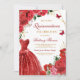 Celebre um marco importante com estilo com este elegante convite de Quinceañera floral vermelho. Com rosas, borboletas e um design de vestido de baile cintilante, este cartão festivo reflete lindamente o significado cultural de uma celebração de décimo quinto aniversário. Perfeito para homenagear seu dia especial, combina sofisticação com detalhes vibrantes para impressionar os convidados e definir o tom para uma noite inesquecível. Personalize com os detalhes do seu evento para criar um convite memorável que capture a magia da sua Quinceañera.