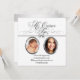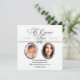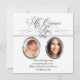 Belo convite de Quinceanera com foto de bebê e foto atual em preto, branco e prata. Este convite de Quinceanera com foto branca doce apresenta molduras ovais elegantes para duas fotos - uma de bebê e a outra atual. Personalize este convite de Quinceanera com foto preta, branca e prateada elegante adicionando suas fotos, detalhes do evento, estilo de fonte, tamanho e cor da fonte e texto.