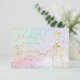 PixDezines convite de quinceanera - apresentando vestido com efeito de aquarela brilhante em branco e dourado. Acentuado com fundo pastel e borboletas.