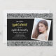 Foto de Quinceañera Foto de Silver Glitter O Convite apresenta as palavras "Quinceañera" em uma fonte sans serif divertida em folha de ouro falso com um brilho prateado de cima e de baixo e um fundo de centro negro. O convite tem uma cinza, uma folha de ouro preta e falsa, que tem um padrão atrás. Personalize-o substituindo o texto do marcador de posição e substitua a foto do marcador de amostra/marcador de posição por sua própria foto. Para obter mais opções, como alterar a fonte e seu tamanho/cor ou o espaçamento entre letras, clique no botão "Personalizar". *Observe que a Marca d'água do Zazzle que aparece na visualização de zoom NÃO aparecerá no produto impresso final. © Rosewood e Citrus