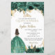 Convite de Quinceañera Princesa Floral Esmeralda Verde Dourado Elegante Orçamento