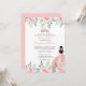 Tiara Watercolor Quinceanera, Cor Floral, Rosa. Uma adorável aquarela com flores cor-de-rosa, misturada com folhas verdes e folhagem, define a cena para esse tema da festa Quinceañera. Um olhar simples, mas caprichoso, com uma variedade de matizes cor-de-rosa e verdes. Uma mistura de fontes serif clássicas e uma bela tipografia de script tornam isto elegante e divertido. Uma princesa brilhante cor-de-rosa tiara brilha por cima e por trás, assim como uma garota adorável com um vestido cintilante rosa. Você pode mudar todas as cores da fonte para torná-la mais colorida ou vibrante se quiser. Você também pode mudar o plano de fundo e a cor do convite para qualquer coisa que quiser. Disponível como um convite impresso ou como um convite digital para download que você pode enviar por e-mail ou que foi impresso localmente!