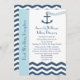 Este convite de recepção pós-casamento tem um tema náutico e apresenta as palavras "Recepção Pós-Casamento" à esquerda em uma faixa azul clara, mas o ponto focal do design é uma âncora com uma corrente em forma de coração sendo lançada em um mar em zigue-zague. Você pode personalizar o convite com o nome da noiva e do noivo, a data e o local do casamento e todos os detalhes do seu convite de recepção pós-casamento. Copyright henishouseofpaper