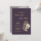 Este convite de recepção de casamento antigo roxo Daisy combina um design moderno boho, estilo vintage, com um design tradicional de tipo real. A ameixa escura e lavanda empoeirada, contrastando com as flores silvestres douradas minimais, juntamente com a caligrafia amarela, criam um toque simples, mas sofisticado para a celebração do seu casamento na primavera ou verão.