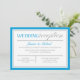 Convites apenas para recepção com um design moderno de tipografia azul e cinza e uma borda azul e cinza para a celebração pós-casamento. O verso é um azul sólido.