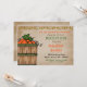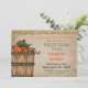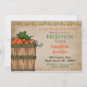 Este convite de tema de outono é perfeito para uma recepção informal após o casamento. O design inclui uma cesta de abóboras, uma linha de flores de outono e um fundo desgastado.
