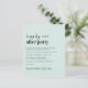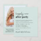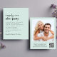 Convite de recepção de casamento verde menta claro e econômico, apresentando "Festa Feliz para Sempre" em uma mistura de tipografia moderna minimalista contemporânea e negrito, seu convite e seus nomes em uma caligrafia semelhante a uma assinatura. No verso, envie sua foto e insira o endereço do seu site de casamento para criar um código QR para que seus convidados o leiam e respondam online e obtenham detalhes adicionais do casamento. Este papel orçamentário semibrilho é semelhante em peso ao papel fotográfico. Uma versão maior 5x7 em papel cartão tradicional também está disponível (mande-nos uma mensagem para obter o link).