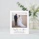 Simples e elegante anúncio de casamento ou fuga romântica com orçamento acessível e convite para recepção ou festa pós-casamento. A frente apresenta sua foto, "felizes para sempre" em uma fonte estilosa com floreios e seus primeiros nomes, data e local do casamento. No verso, personalize seu anúncio de casamento e convite para recepção ou festa, insira o URL do seu site de casamento para criar um código QR para que os convidados leiam e vejam suas fotos de casamento, todos os detalhes e respondam online e assinem seus nomes de casados em uma fonte semelhante a uma assinatura.