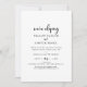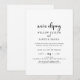 Este convite de recepção de fuga romântica com script rústico é perfeito para uma festa no campo após a fuga. O design simples e moderno em preto e branco apresenta uma tipografia única e caprichosa de caligrafia manuscrita com um estilo boho minimalista contemporâneo. Personalizável em qualquer cor. Mantenha o design minimalista e simples, como está, ou personalize-o adicionando seus próprios gráficos e ilustrações. Cartões de RSVP são vendidos separadamente, ou você pode adicionar informações de RSVP no verso do cartão.
