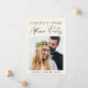 Elegante anúncio de casamento / elopamento pequeno e convite para recepção / festa de celebração em creme claro. A frente apresenta sua foto de casamento e "Festa Feliz para Sempre" em uma mistura de tipografia simples e um script moderno e chique. Abaixo da sua foto, adicione seus nomes e data de casamento. No verso, personalize sua mensagem e adicione detalhes da festa ou recepção e seus nomes em um script semelhante a uma assinatura.
