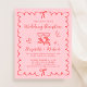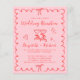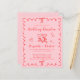 Celebre seu dia especial com charme e estilo moderno com este convite de casamento cor-de-rosa e vermelho, apresentando ilustrações desenhadas à mão e letras e fontes divertidas. Taças de vinho brindando, laços, um coração e detalhes delicados adicionam um toque festivo, tornando-o perfeito para casais que desejam celebrar uma recepção alegre. A moldura ondulada e recortada cria um design único e atraente que se sente clássico e fresco. Personalize com os nomes dos noivos, data da recepção, detalhes do local e informações de RSVP. Se você está planejando um evento formal ou uma reunião casual, este design combina com uma ampla gama de temas de casamento - de minimalista moderno ao romance clássico. OBSERVAÇÃO: Este papel econômico tem peso semelhante ao papel fotográfico - uma versão mais grossa e maior de 5x7 em papel cartão tradicional também está disponível (envie-nos uma mensagem para obter o link).