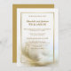 Um convite de recepção pós-casamento com pena de ouro elegante.