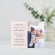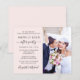 Um anúncio de casamento privado ou elopeio cor-de-rosa, favorável ao orçamento, combinado com um convite de recepção que inclui a sua fotografia e "Felizmente Nunca Depois da Festa" numa mistura de tipografia moderna e uma escrita gráfica. Personalize seus detalhes de festa ou recepção e adicione seus nomes em um script semelhante a assinatura. No verso, insira o endereço de URL do seu site de casamento para gerar um código QR que seus convidados podem digitalizar para RSVP on-line.
