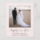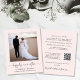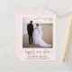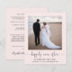 Serviço de rosa claro de orçamento ou anúncio de casamento e convite de recepção. A frente mostra sua foto, "feliz para sempre" em um roteiro de caligrafia em na moda com sucos e seus primeiros nomes, data de casamento e local. No verso, personalize seu anúncio de casamento e sua recepção ou convite de festas, insira seu endereço no site do casamento para criar um código QR para os convidados digitalizarem suas fotos de casamento, todos os detalhes, e para RSVP on-line e assinar seus nomes casados em um roteiro semelhante a assinatura.