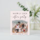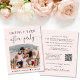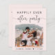 Elemento de rosa claro de orçamento ou anúncio de casamento privado e convite de recepção que mostra sua foto do dia de casamento e "Feliz de Sempre" em uma mistura de simples tipografia e um roteiro de chic com balanços. Adicione seus primeiros nomes e a data do casamento. No verso, insira seu endereço de URL do site de casamento para criar um código QR para seus convidados pesquisar todos os detalhes e RSVP on-line, personalize seus detalhes de lançamento e recepção e adicione seus nomes em um script semelhante a assinatura.