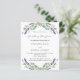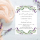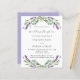 Um fundo branco decorado com flores lavandas e verde de eucalipto. Personalize e seus nomes e detalhes. Fundo: lavanda, fundo colorido violeta. 1 folha = 1 convite impresso de borda a borda.