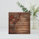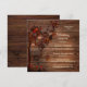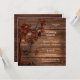 Um casamento com recepção apenas, convite pós-casamento ou após o casamento com uma árvore de outono com folhas coloridas, lanternas românticas e rosas vermelhas e laranjas em um fundo de madeira rústica.
