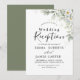 Celebre o seu amor com este convite de recepção de casamento atemporal e sofisticado. Com uma delicada disposição botânica de eucalipto, folhas exuberantes e folhagens, este design é realçado por uma suave lavagem de aquarela em verde menta para um toque fresco e elegante. Perfeito para uma festa simples, porém elegante, após a fuga romântica, este convite define o tom para uma celebração lindamente natural. Cartões de RSVP são vendidos separadamente, ou você pode incluir detalhes de RSVP no verso para maior comodidade.