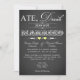 Este convite de recepção de casamento pós-casamento em estilo vintage com tipografia em lousa de giz cinza e branca apresenta uma variedade de fontes com rolos e corações pálidos em amarelo. Tem uma nova abordagem divertida na tendência "Coma, Beba e Case-se", com um jogo de palavras que diz "Comi, bebi e casei-me" para refletir o evento de casamento anterior. É mostrado aqui em papel básico. É facilmente personalizado com suas próprias informações. Há algum texto personalizável que você pode editar da maneira que precisar. ALÉM DISSO, observe que tudo será impresso como aparece no seu monitor. A Zazzle não editará nada para erros de digitação ou desalinhamento, etc., e eu não verei após a sua encomenda. Se precisar de ajuda com a sua redação, por favor envie-me um e-mail ANTES de encomendar. Se houver outros itens que você precise para tornar o seu evento ainda mais especial, por