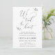 Este elegante anúncio de casamento também serve como convite de recepção de casamento. Convite de recepção de dupla face apresenta "nós amarrámos o nó" em letras cursivas pretas com ramos de louro pretos e texto que anuncia o casamento dos recém-casados e convida os convidados para uma recepção de casamento informal. Personalize com sua foto no verso.