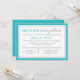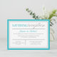 Convites apenas para recepção com um design moderno de tipografia turquesa e cinza e uma borda turquesa e cinza para a celebração pós-casamento. O verso é um turquesa sólido.