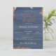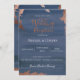 Convite de recepção de casamento com pintura em aquarela azul Moody em azul-marinho com folha de cobre falso. Personalize o estilo, cor e tamanho da fonte do texto.